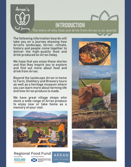 "We have researched and created storyboards that tell the story of Arran’s landscape, producers and their products. They encourage visitors to explore more deeply and lead them to the retailers where they can buy produce from Arran.