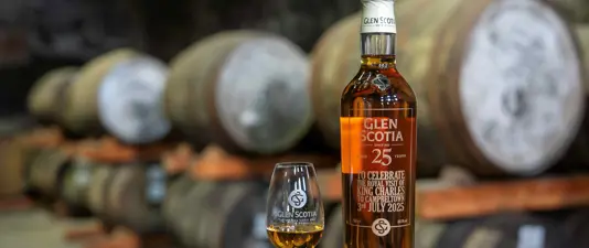 In celebration of King Charles’ III visit to Campbeltown today (3 July 2025), multi award-winning distillery Glen Scotia presented The King with a bespoke bottling of its prized 25 Year Old single malt whisky.