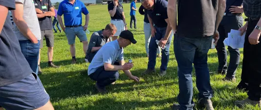 Soil pH, field drainage and implementing a new grass and grazing plan were key topics at the Stirlingshire Monitor Farm summer meeting. At an information-packed gathering, visitors also discussed stock health and nutrition and heard more about what the host farmers had been doing since their first meeting six months ago.